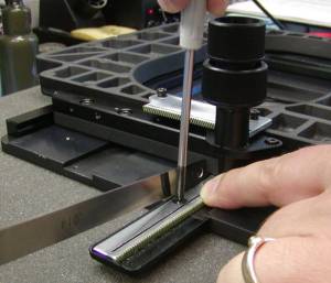 Step 8: Remount the stage on the microscope and focus the stage on a sample. Test the motion of the stage. If the stage is adjusted correctly there should be no backlash, no gritty motion, and stable landings on the target.