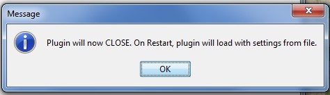 14) Save, saves all the Plugin settings in an xml file. When clicked, user is shown a file dialog box, user can select the save file name and location where it is saved it. Note: Plugin automatically saves and retains settings between sessions. This Buttons lets you copy these settings in a XML file
