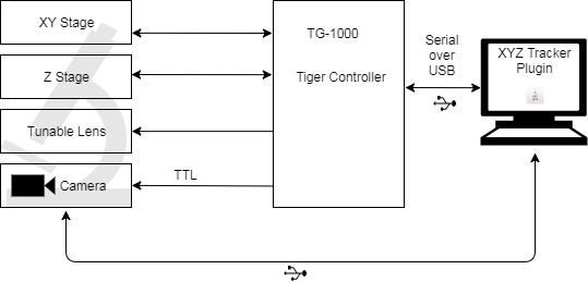 ASI's XYZ Tracker is a MicroManager Plugin, That uses Tiger Controller, XY stage, Z focus drive and a Tunable Lens to keep a sample in view for extended period.