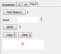 6) Textbox prints the results from the “Start Z Sweep”, “Test OpenCV”, “XY Calib”, and replies to the serial commands.