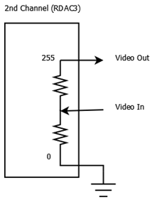 The second channel/potentiometer controls the amplitude of the video signal applied to the focus signal extractor circuitry. During normal operation RDAC3 register is written with 0xFF, to let all the video signal pass, but during calibration this channel is set to 0x00, to help in setup of zero adjust potentiometer of channel one.
