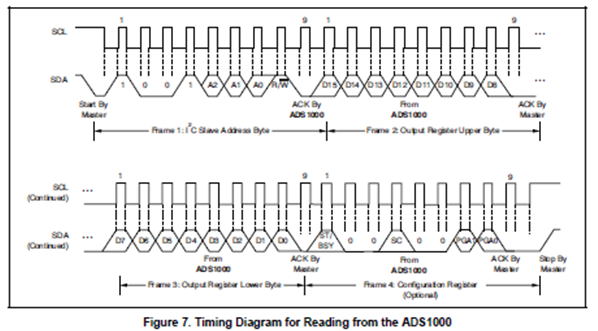 Figure 6: I2C reading pattern from ADS1000 datasheet