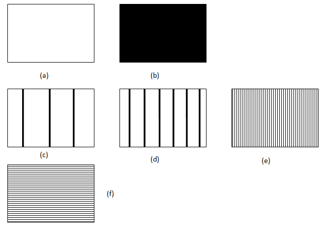 • Patterns a and b are referred as blank video patterns and should result in zero focus signal. They are the patterns ASI applies to the card during factory calibration.