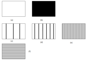 • Test pattern f demonstrates the limitation of the autofocus card. Because of design, the ASI’s autofocus card process the video line by line, so when pattern f is applied, the card does not notice any contrast or edges and results in a zero focus signal. However in real world there are very few objects or specimens with perfect horizontal pattern like f. Even a slight skew is enough for the card to extract some focus signal.