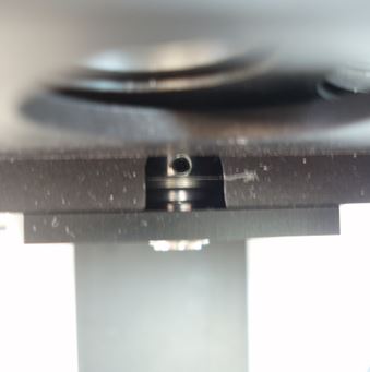 Step 3: Remove the filter wheel body from the housing with a 3/32” Allen wrench. Don’t remove the button head screws entirely as they will hold the lower felt washers in place when the unit is removed.