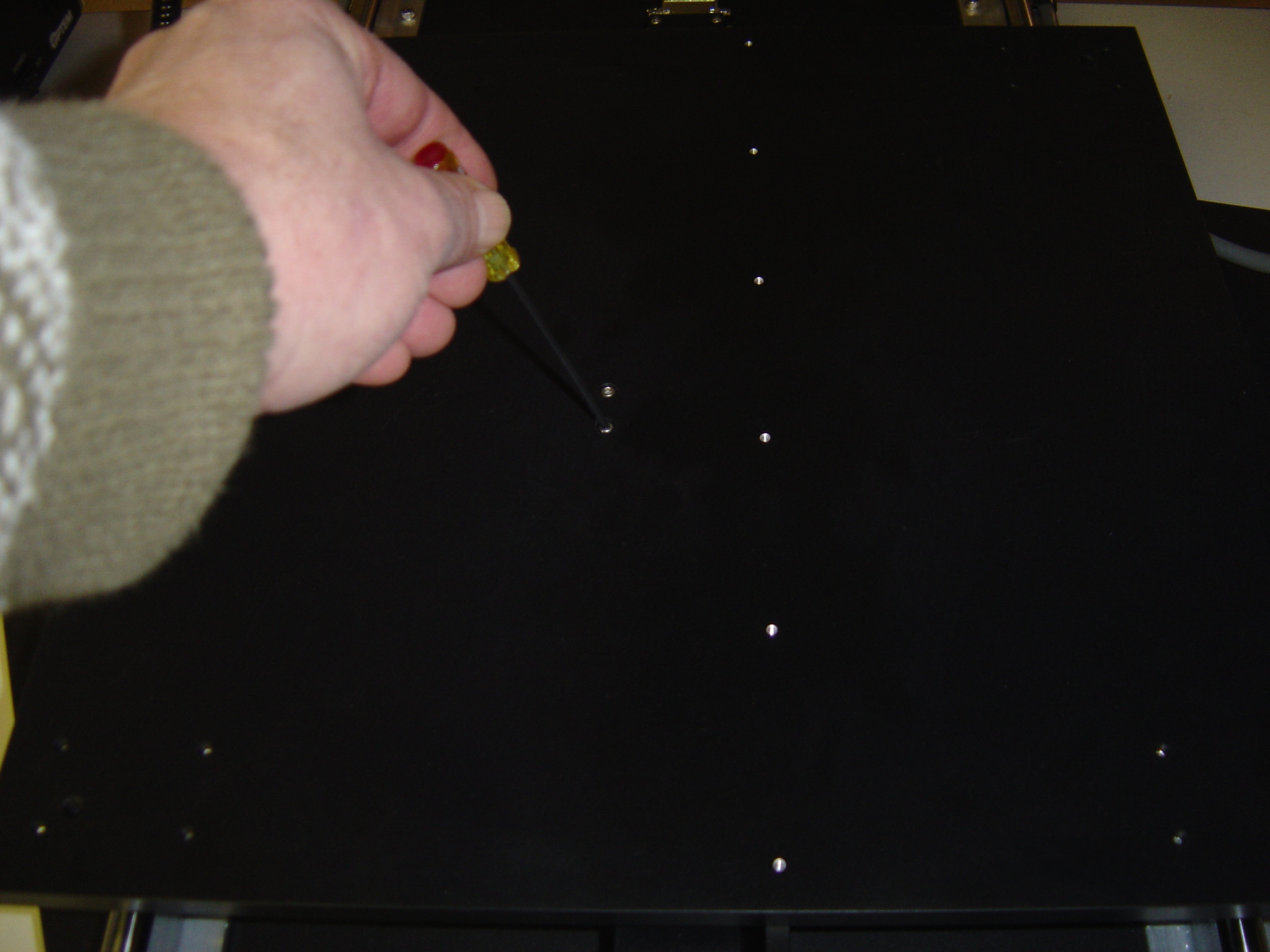 To lubricate the Y-axis lead screw, it is necessary to remove the stage (and the optional light table, if applicable). This procedure is outlined in figure 10.