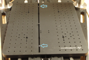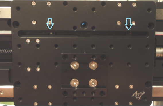 There are three sets of limit switches on the GTS. The limit switches for the Z (focus) axes are fixed and merely prevent the controller from driving the motors past the end of travel. The limits for the X(gantry) and Y (tray) axis may be adjusted to limit the range of travel. Each axis has two magnets that slide on a rail slot which limit the range of motion by activating a hall effect sensor. The limit switches are set at the factory to allow the longest range of travel.