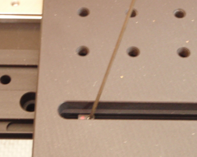 Figure 5 below shows one of the limit switch magnets, which can be moved along the rail after loosening its locking set screw with a 0.050 Allen wrench. To reduce the range of travel, move the magnets inward toward the center of the sample tray.