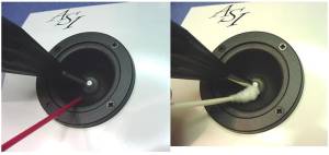 Step 1: Clean the ball hub of the joystick with clean dry air and a cotton swab while moving the stick to its full range of motion in both X and Y.