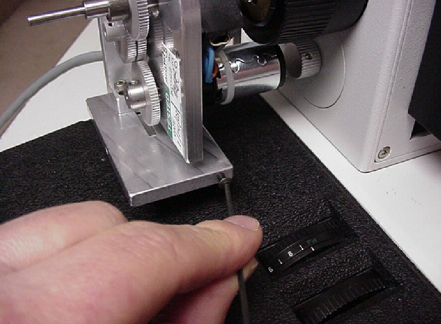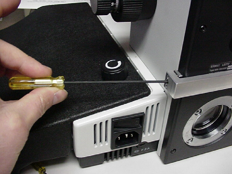 In this part of the procedure the left fine focus knob will be removed from the microscope.