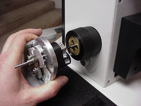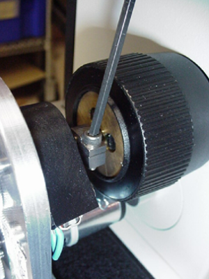 - Securely tighten the fine focus shaft clamp as shown in figure 5. Please note that this clamp must be securely tightened or the drive may slip.