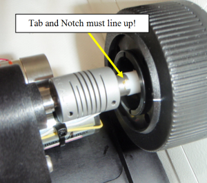 d) Aligning the notch and tab, push the shaft coupler till the unit is snug up against the tab as shown in figure 3d.