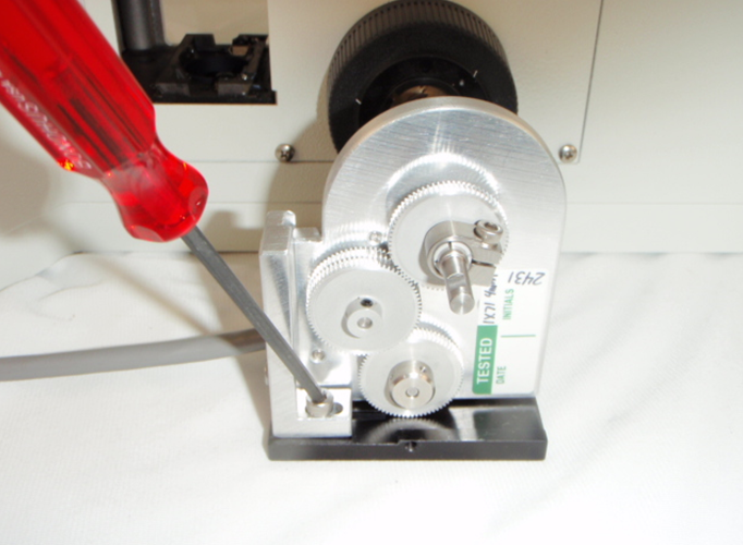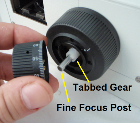 c) Carefully remove fine focus knob. This will expose the fine focus post and the tabbed gear.