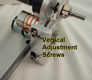 d) Use a 3mm allen wrench to slightly loosen two baseplate vertical adjust screws to allow for aligning Z-Drive unit. Loosen the screw just enough so that the adjustment bar can slide easily.