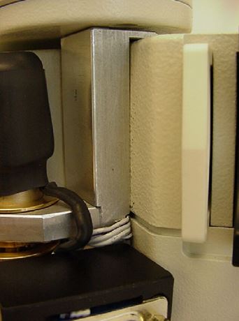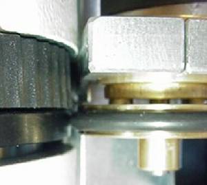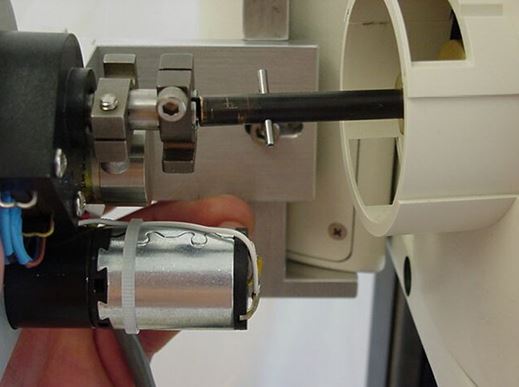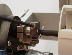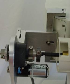 Figure 7: Loosen clamp and rotate motor clockwise to engage the rubber wheel with the filter turret