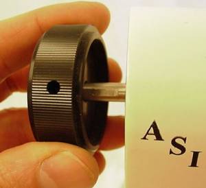 Press and hold the @ button for a second and then release it. The LCD display should show a ‘+’ when the home (0) filter is located. Pressing the @ button momentarily again should direct the filter wheel to the next detent position, and the LCD display should show a ‘-’ If the magnets are not detected or the home position is not located then reposition the motor drive as outlined in section d until the LCD shows the proper display. If the filter wheel does not settle at the detent position as outlined in section c then the magnets themselves may have to be moved slightly by pressing on them.