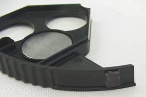 If new magnets need to be installed, be sure to follow this polarity convention. The ceramic strip magnets that are supplied have alternating stripes of magnetic polarity. The magnets must be cut and positioned vertically so that correct polarity is picked up by the Hall-effect sensor. The magnets must then be attached and positioned horizontally on the filter holder so that the motor stops when the filters are in position. This can be accomplished with a little trial and error.