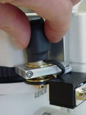 b) After installing the magnets as described in the over view and shown in figures 1 - 3 above place the filters in the holders and install the holders into the microscope as described in the microscope manual.