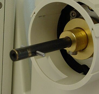 The filter changer utilizes a Hall-effect sensor with magnets mounted to the filter holders to determine where the motor should stop, and which filter is the home filter position. The magnets must be correctly positioned on the filter holders for correct positioning of the filter. The LCD display shows a ‘+’ when the home (0) sensor is detected; a ‘-‘ is displayed when a magnet for any other position is detected. The magnet polarity determines if a ‘+’ or ‘-‘ is displayed.