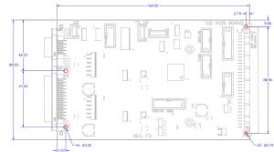 Another method is to mount the card to a panel through the holes on the DB9 and DB25 connector . Dimensions shown in image below.