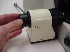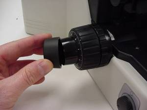 Remove the left fine focus knob from the microscope as follows: