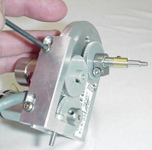 Figure 7: Installing Z-drive. Note tab on clamp slides into notch on plastic gear