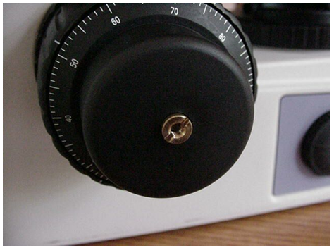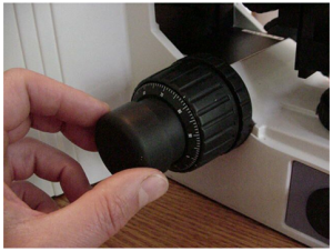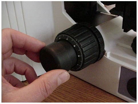Remove the left fine focus knob from the microscope as follows: