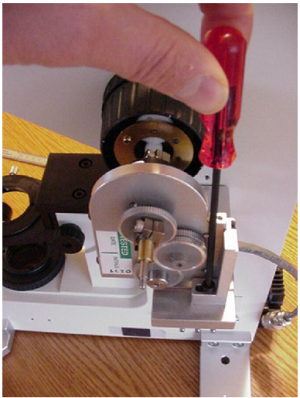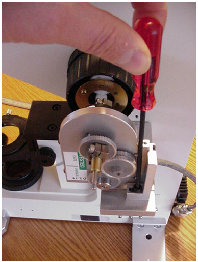 Remove the right fine focus knob from the microscope as follows: