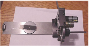 Facing the front of the microscope hold the motor assembly in your right hand and slide the drive plate under the microscope. Align the hollow end of the drive shaft bearing so that it will slide over the drive shaft / gear assembly that you secured to the microscope’s fine focus shaft in step #1. Slide the drive in so that the drive gear mates with the encoder gear. Push the drive completely onto the microscope so that the edge of the black base plate is against the side of the microscope. Once the drive is completely pushed onto the microscope reattach the base clamp that you remove in step #2, and use the 2.5mm Allen Wrench to tighten the set screw in the base clamp assembly. This will cause the silver press bar to squeeze against the side of the microscope and hold the drive assembly securely in place. After the base plate has been secured insure that the gears are properly aligned and that nothing is binding or rubbing.