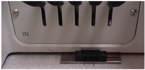2) Locate the computer interconnect cable. Connect one end to the mating connector on the back of the Controller labeled “Serial In”. Connect the other end to the appropriate serial output of your computer. For an IBM compatible PC this is typically COM1 through