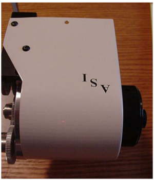 The ASI z-axis drive attaches and drives the fine focus shaft of the microscope. The drive assembly is secured to the microscope via a custom ASI base plate that mounts to the microscope utilizing a clamp assembly that secures the base plate to the bottom of the microscope. Precise alignment of the ASI drive onto the fine focus shaft of the microscope is accomplished through a triple axis sliding adjustment bar. Installing the ASI drive assembly involves six steps: