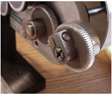 Turn the left fine focus knob and insure that there is no one spot with in the 360 degrees of rotation where any drag is felt. If you feel any drag, slightly move the drive along the horizontal ( y axis ) and vertical ( z axis ) to a point where no drag is felt. Since the drive is usually self aligning little or no movement in the x and y axis is required. Use the 2.5mm and 7/64” Allen wrenches to tighten the adjustment screws, that were loosened in step # 2, at a point where no drag is felt. Recheck for minimum drag on the fine focus shaft by turning the right fine focus shaft. Repeat alignment procedure if necessary.