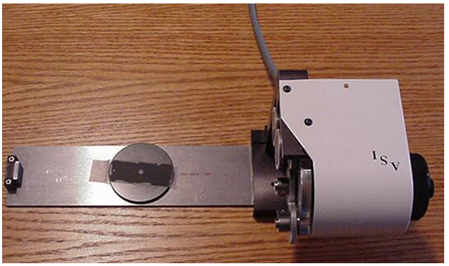 After the nut is removed remove the right fine focus knob by unscrewing it, counter clock wise, from the fine focus shaft. Please note that it may be necessary to hold the left fine focus knob when removing the right fine focus knob in order to keep the fine focus shaft from turning. After removing the knob locate the ASI cover and install it in place of the cover just removed.