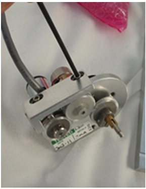 1. Find the drive gear. 2. Align the posts on the Drive Gear with the slots on the microscopes fine focus drive plate. 3. Slide the Drive Gear on to the microscopes fine focus drive plate so that the gear posts engage the slosts on the plate. Note: The drive gear will magnetically lock onto the plate. In some cases the microscopes find focus drive plate will be slightly warped preventing a flat fit – the flex coupler will compensate for this.