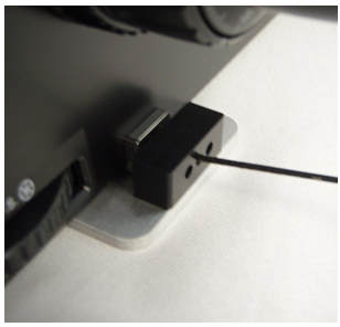 2. Lightly tighten the clamp on the microscope end with a 2 mm hex wrench. Note: It may be neccissary to slide the flex coupler back and forth to ensure proper alignment, so only lightly tighten the flex coupler at this point.