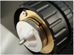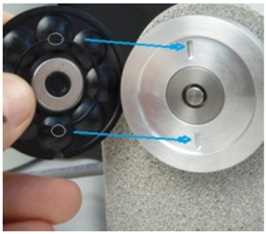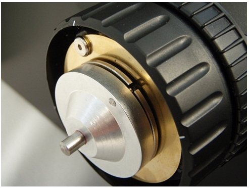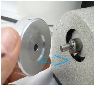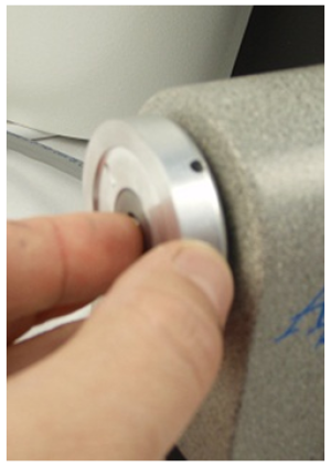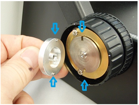 Align the posts on the original microscope knob the slots on the drive plate and press on. The knob should magnetically attach to the plate, completing the installation procedure.