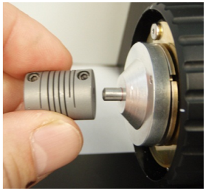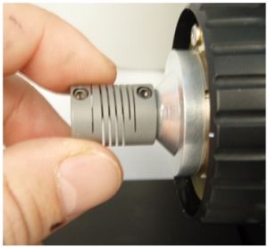 Slide flexible coupler over the Drive Gear’s shaft while holding right hand knob in place.