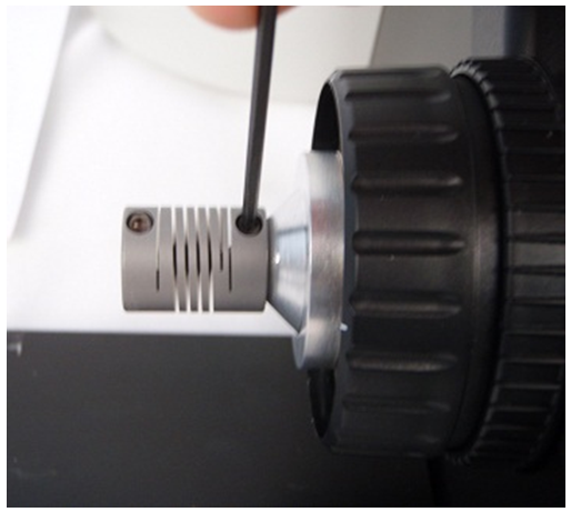 Note: there should be no point throughout the 360º rotation of the fine focus knob where an increase in drag is felt. If drag is felt, repeat the above steps. In some cases sliding the flex coupler back and forth between the drive shaft and the Drive Gear shaft will help determine if the two shafts are properly aligned – be sure to retighten the coupler set screws so there is no slippage!