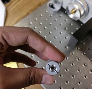 - Slide the microscope fine focus knob over the shaft extension and press it on all the way so that the plastic tabs on the knob mate with the slots on the ASI drive shaft. Install the small round nut in the end of the fine focus knob and tighten it with the medium slotted screwdriver. Slide the black rubber boot over the fine focus knob. Refer to figure 1 if necessary.