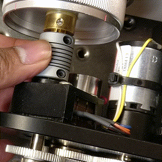 Put the flex coupler on the Microscope shaft with the Keyway pointed at the scope as shown in figure 5b and 5c. Do not tighten the flex coupler screws yet.