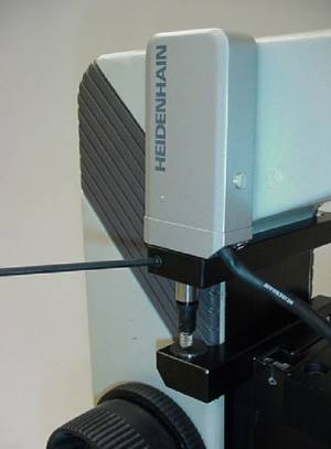Please note that the encoder has a total travel of 12mm and that it should be positioned to allow the most convenient travel distance for the stage. In most instances the upward movement of the stage/focus will only be a few millimeters from the focal plane. In these applications the above installation procedure will provide the optimal downward travel range. However, this may vary slightly depending on the application and objectives used. To allow for the maximum upward linear encoder movement the stage can be moved to its upward mechanical stop and the encoder installed with the plunger fully retracted.