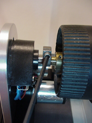 Recheck for minimum drag on the fine focus shaft by turning the right fine focus knob. If there is any drag felt at any particular point while rotating the right fine focus knob repeat the alignment procedure by loosening the horizontal, and vertical adjustment screws and repositioning the drive. The drive is usually self aligning , and if realignment is necessary loosen the horizontal, and z vertical adjustment screws and move the drive so that is slides into its natural position and then tighten the two adjustment screws with the 5/32 allen wrench.