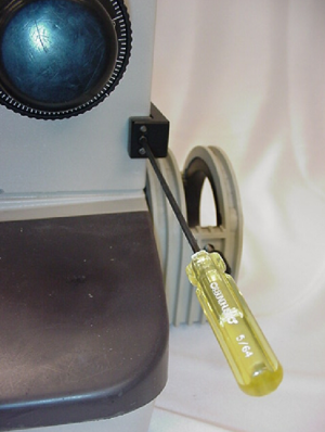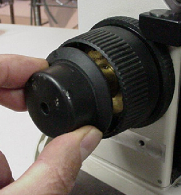 In this part of the procedure the left fine focus knob will be removed from the microscope: