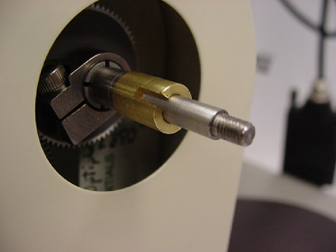Use the 1/16“ Allen wrench move the two screws from the edges of the drive assembly. Locate the ASI cover plate. Place it in position over the motor drive assembly and secure it with the screws just removed. Locate the original focus knob that was removed, and slide the focus knob over the protruding end of the drive shaft. Please Note the tabs on the inside of the plastic knob mate with the slots on the brass piece. Use the original slotted nut to secure the knob in place. Install the rubber boot over the knob.