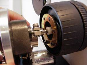 - Use Allen wrench to loosen two set screws and remove brass adapter plate.