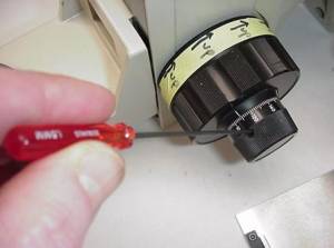 d) Tighten the baseplate set screw as shown below in figure 11. Recheck the alignment in step d, above, by noting the drag on the right fine focus knob. No noticeable drag should be felt. Repeat the above steps, if necessary.