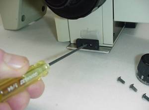 The procedure below outlines the steps necessary to install the ASI Microscope Focus Controller Drive onto the Nikon Um-2 microscope.