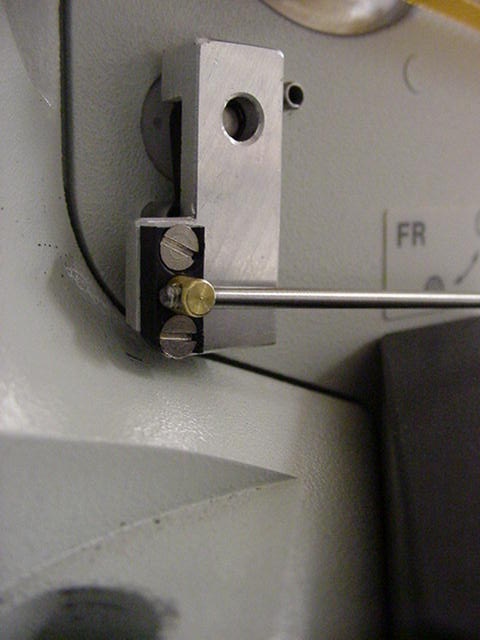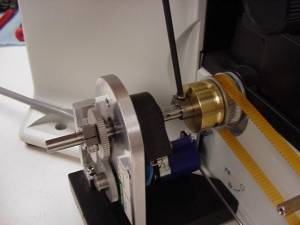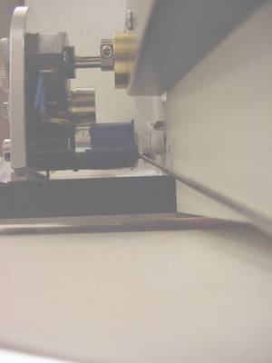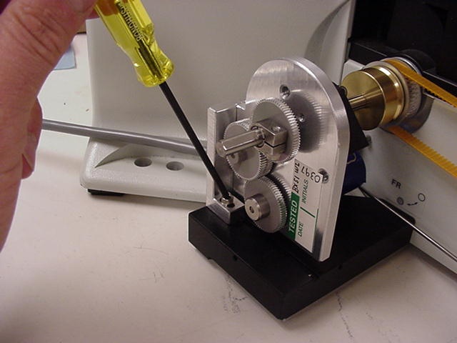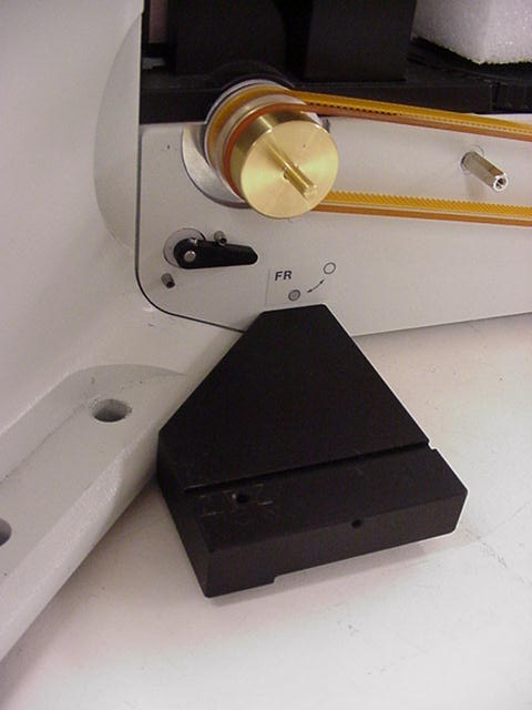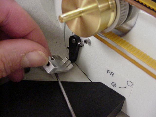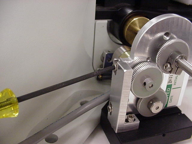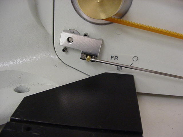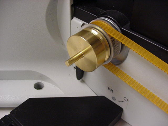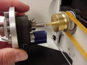 - Removing the drive belt cover, the left fine focus knob and installing the clutch plate