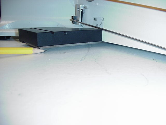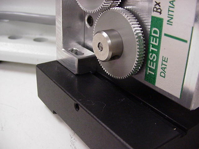 Rotate the drive plate and vertical adjustment bar assembly so that the tab that is on the bottom of the vertical adjustment bar slides into the machined groove on the base plate as shown in figure 16.