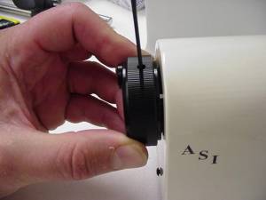 As outlined in figures 1 through 6 on the proceeding page remove the original focus drive knobs, belt drive cover & belt drive. Install the brass ASI clutch assembly in place of the knob removed in figure 4. After installing the brass ASI clutch assembly, as shown in figure 6, replace the drive belt that was removed in figure 3. After the belt has been installed the belt cover that was removed in figure 2 can be reinstalled.